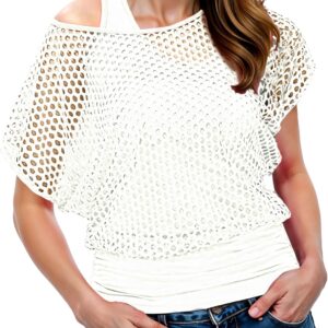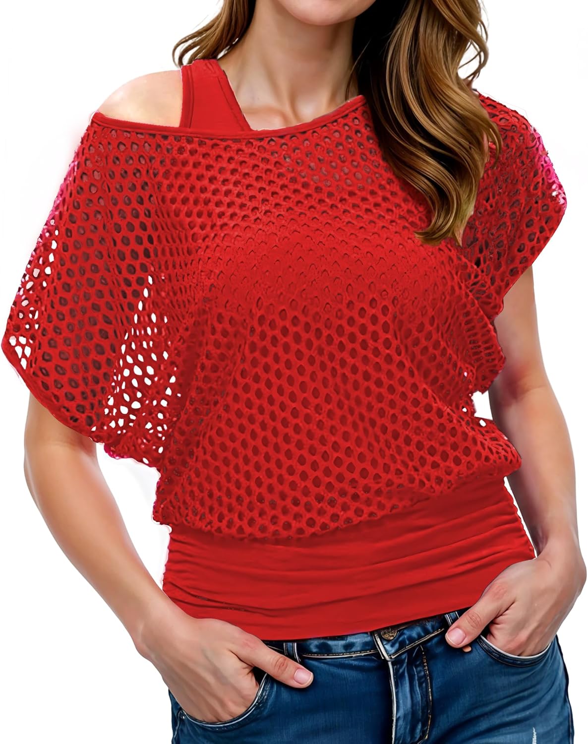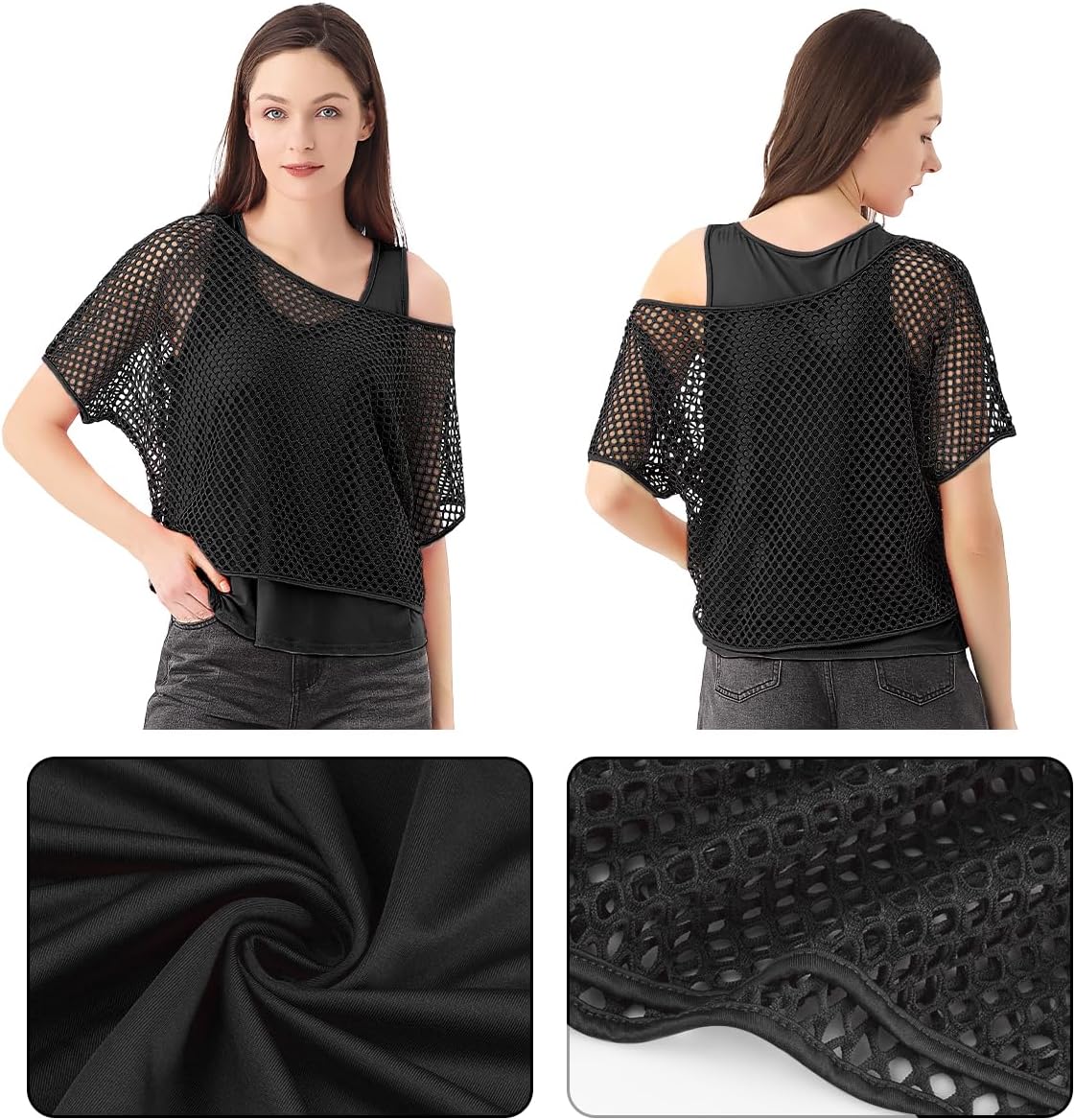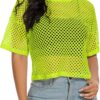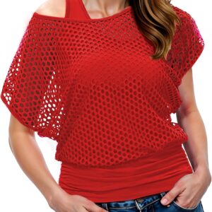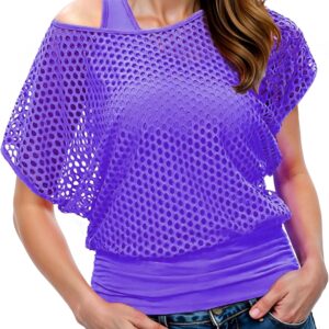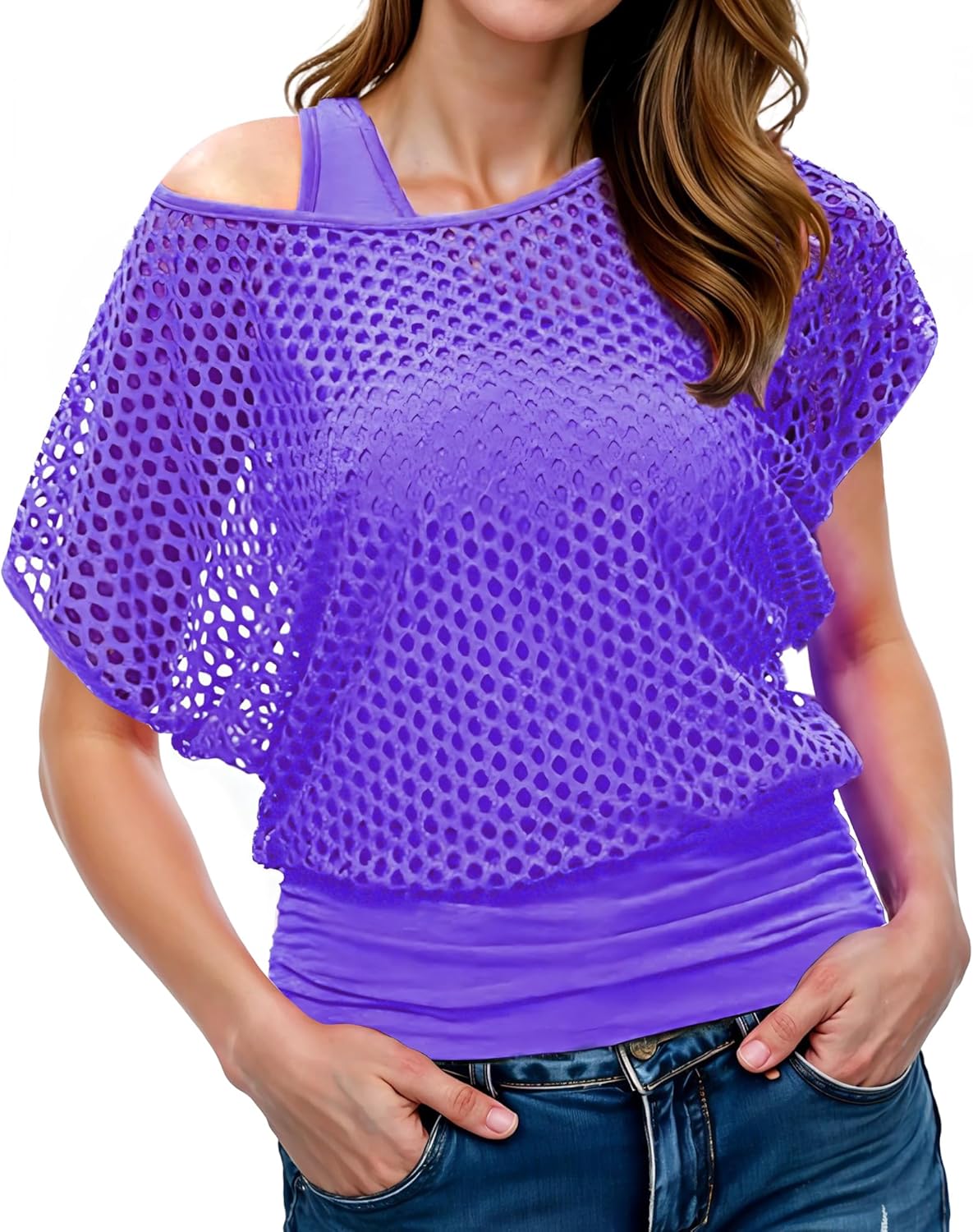 WILDPARTY Women Casual Sexy 80s Costumes Fishnet Neon Off Shoulder T-Shirt Two Pieces