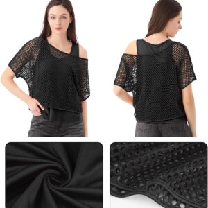 WILDPARTY Women Casual Sexy 80s Costumes Fishnet Neon Off Shoulder T-Shirt Two Pieces quantity