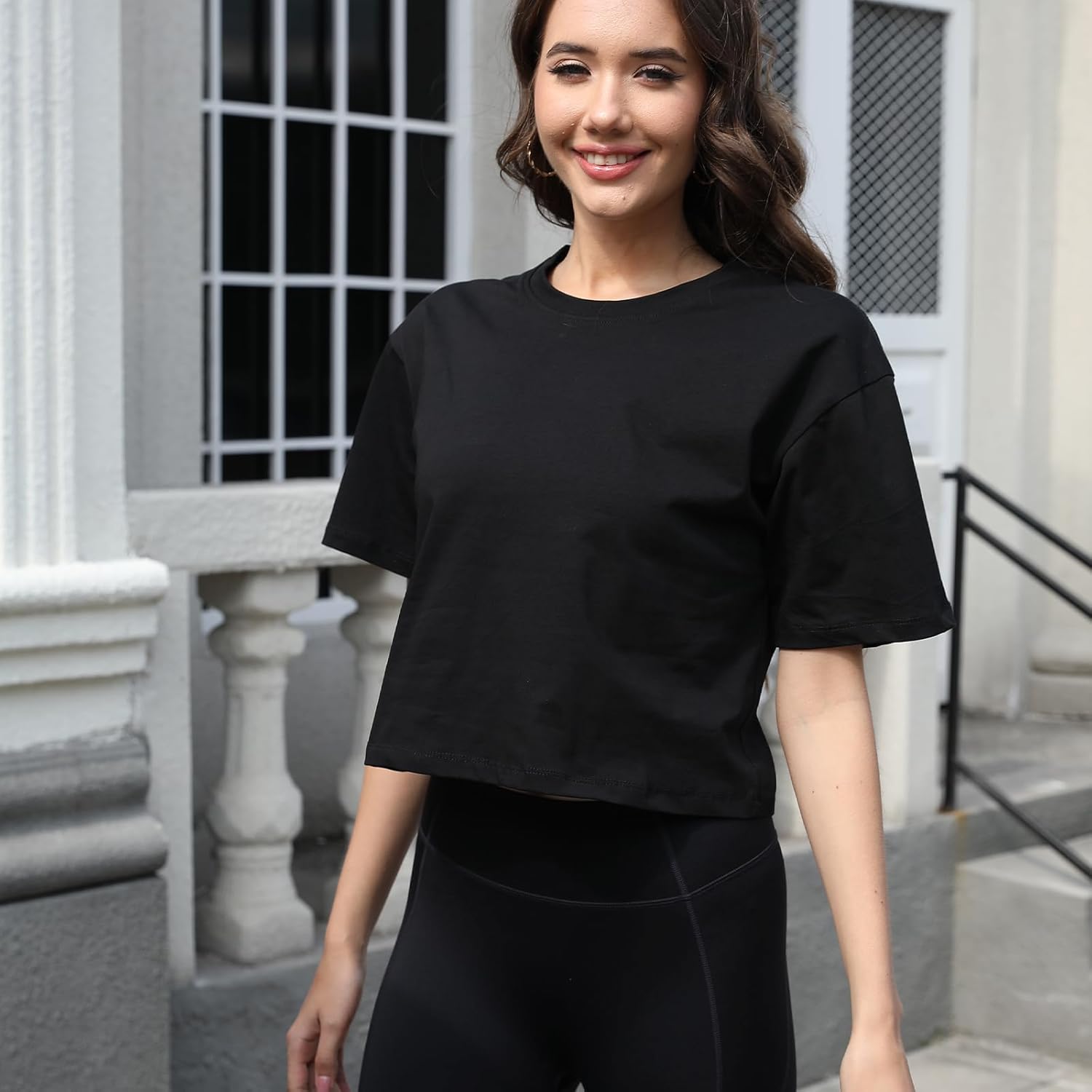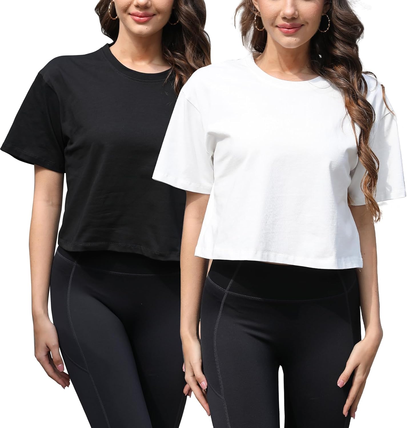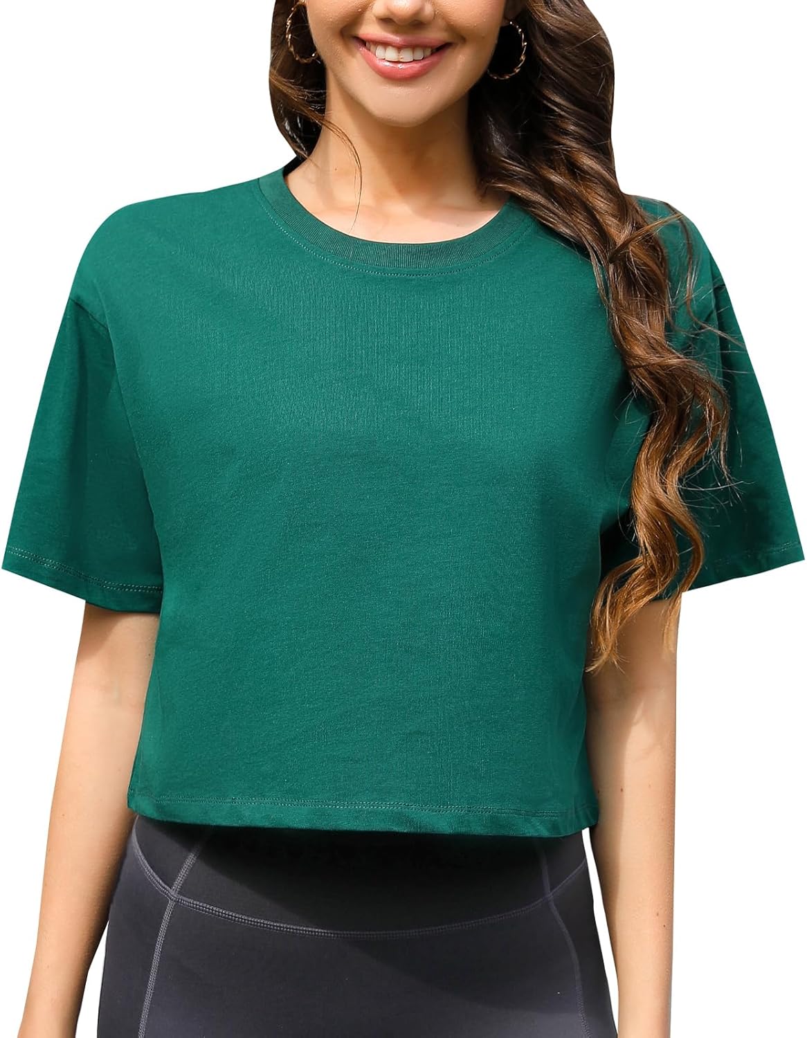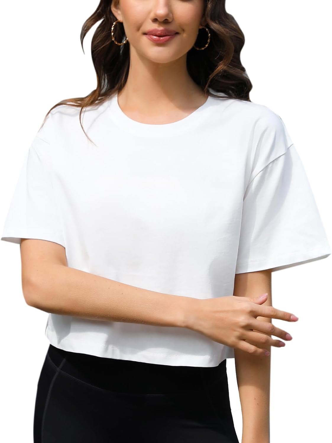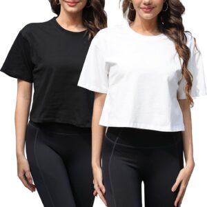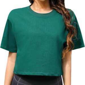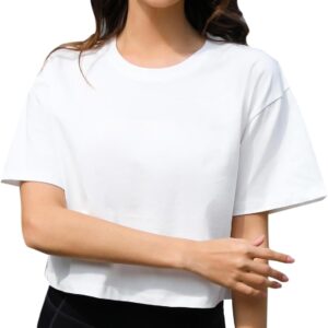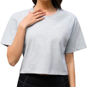Women Workout Crop Top T-Shirt 100% Cotton Drop Shoulder Half Sleeve Oversized Yoga Running Cropped Loose Tee