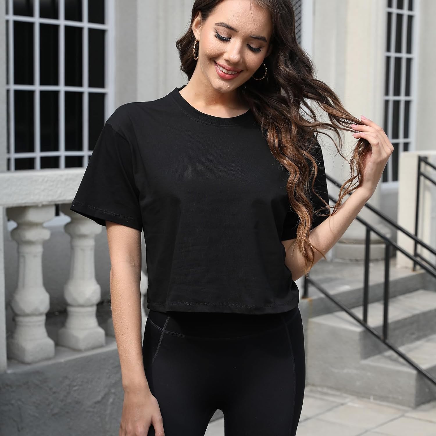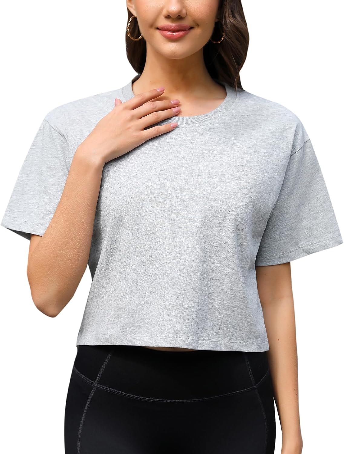 Women Workout Crop Top T-Shirt 100% Cotton Drop Shoulder Half Sleeve Oversized Yoga Running Cropped Loose Tee quantity