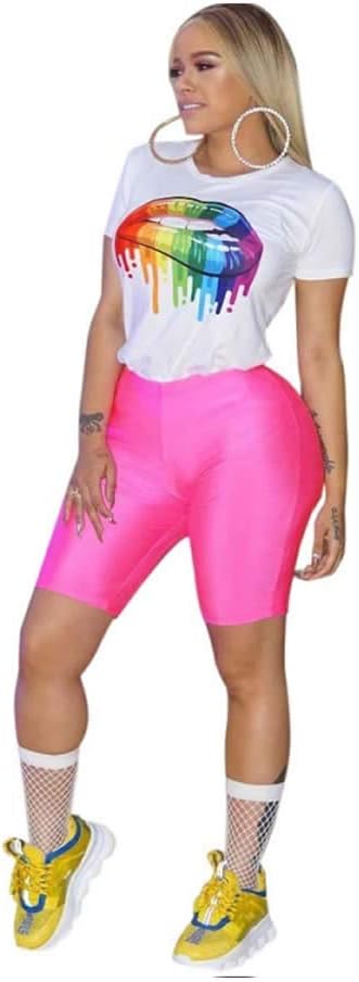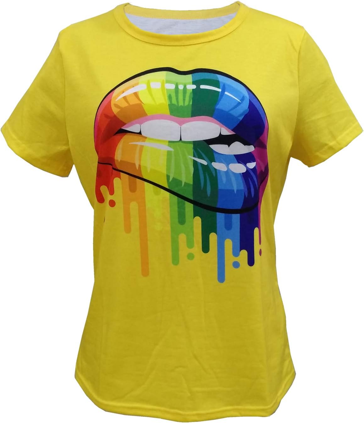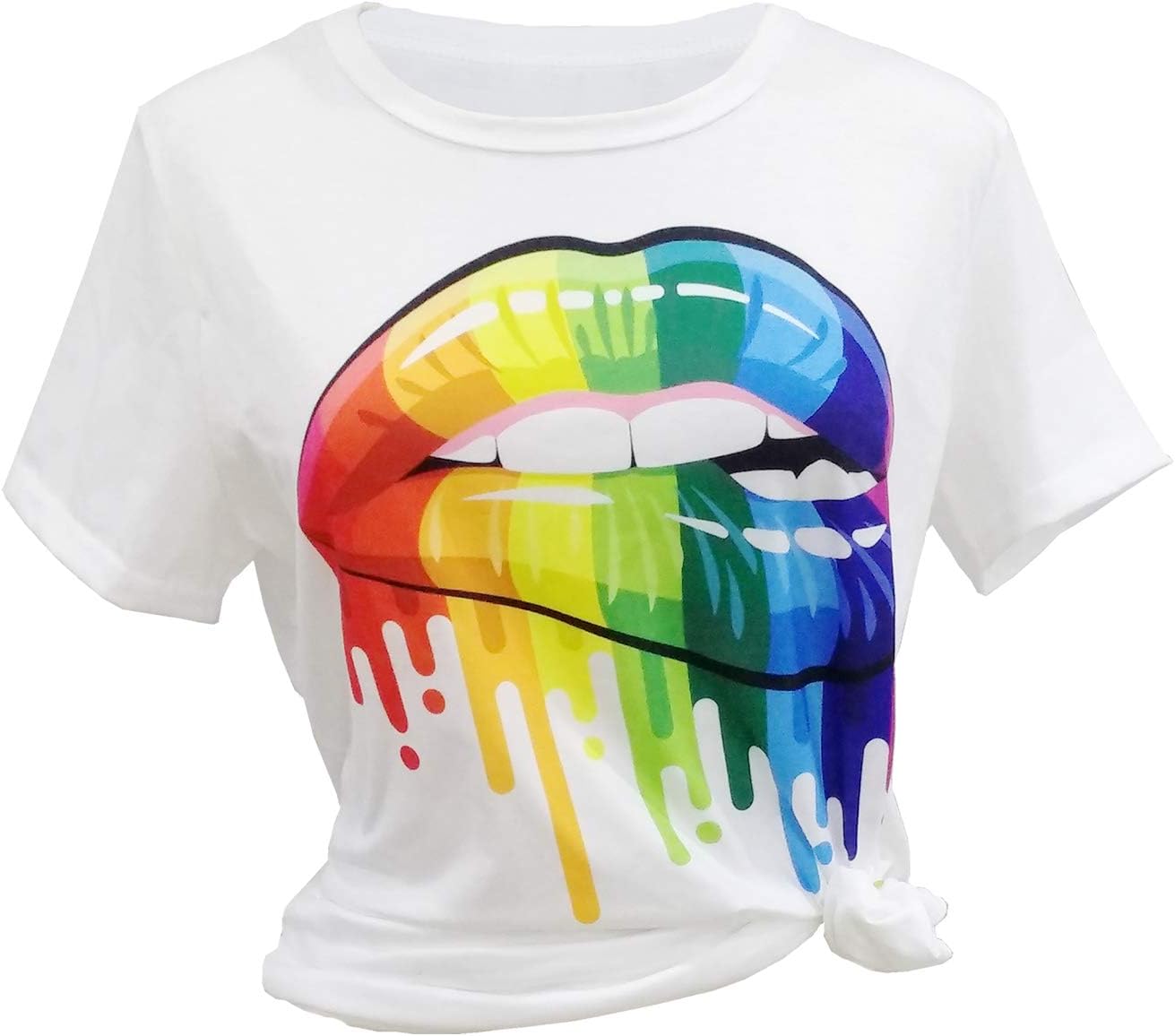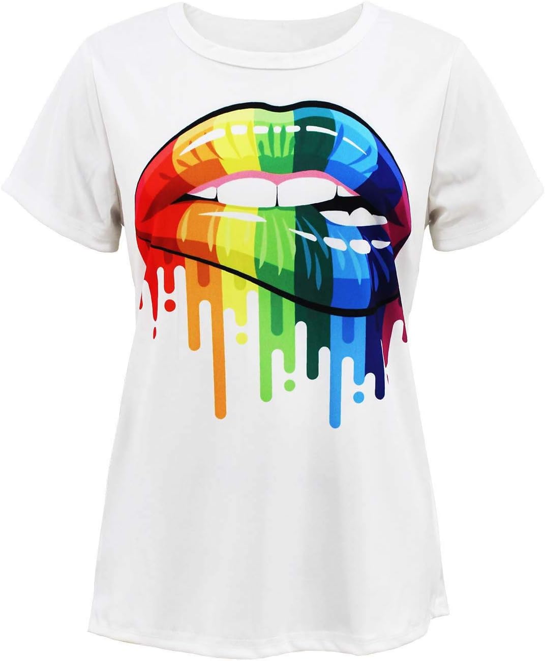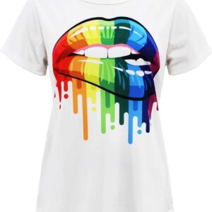 Womens 80s T-Shirt Print Casual Color Lips Graphic Tees Short Sleeve Summer Tops with Funny Graphic