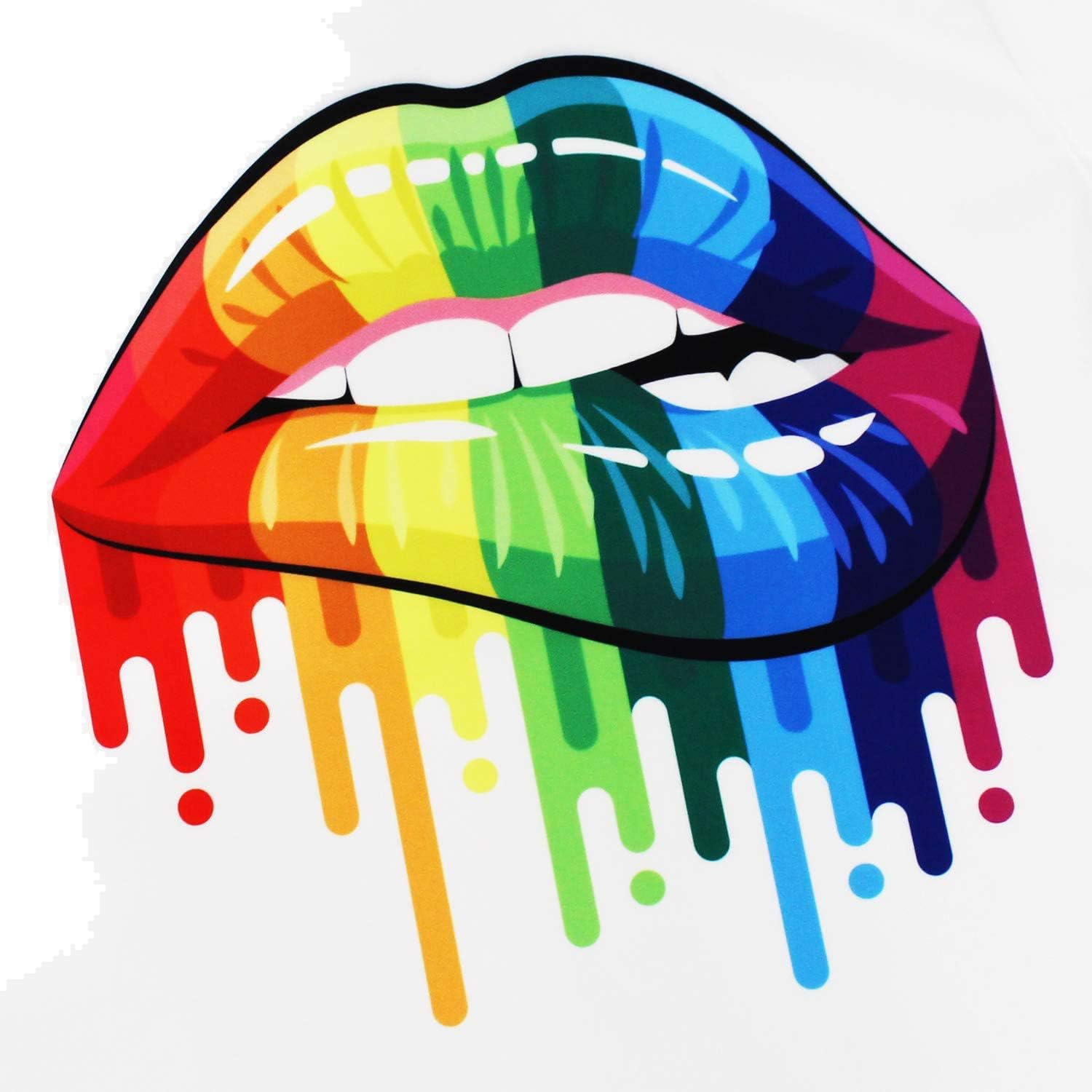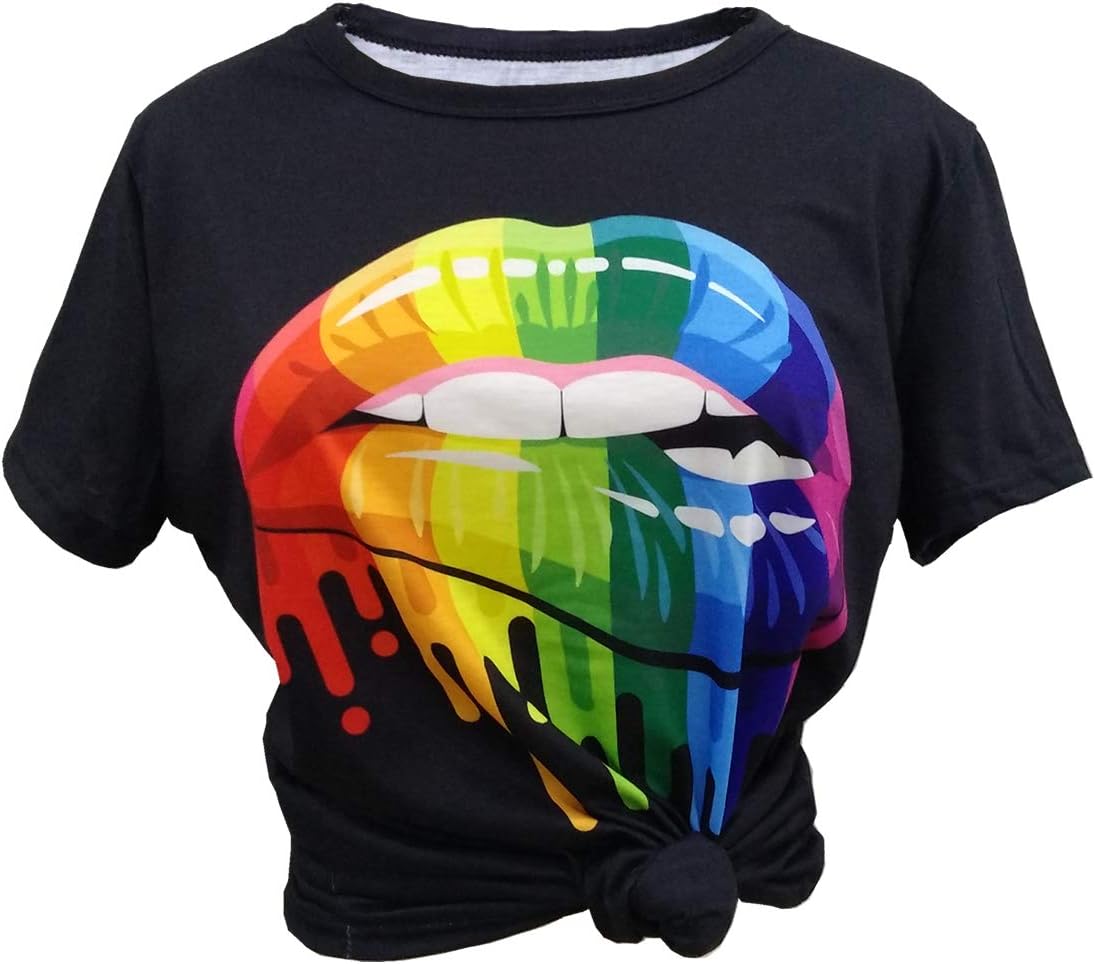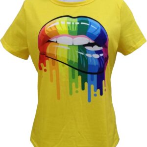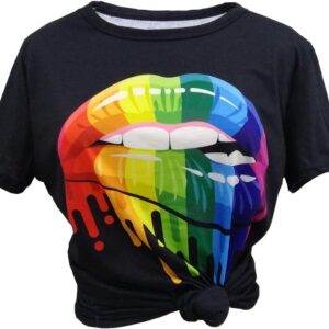 - Short sleeve, crew neck, cute neon rainbow Lips shirt funny graphic tee shirt. Simple, chic and delightful.
