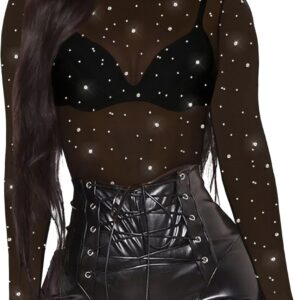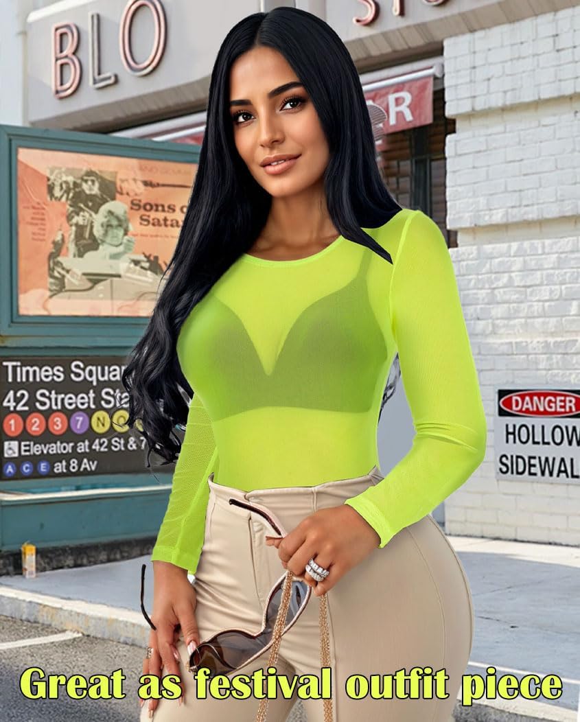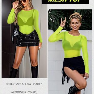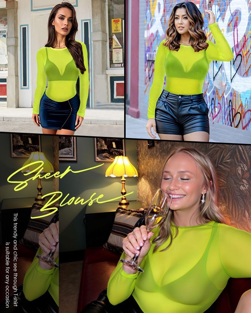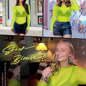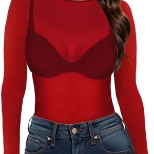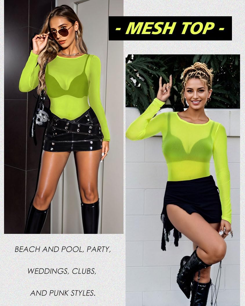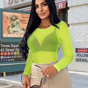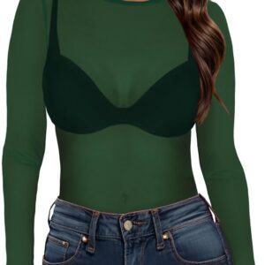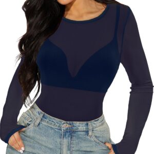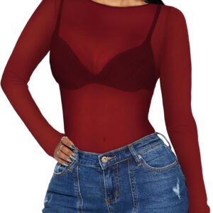Women’s Mesh Tops Sheer Long Sleeve Tee Shirts Bodycon See Through Blouse Clubwear