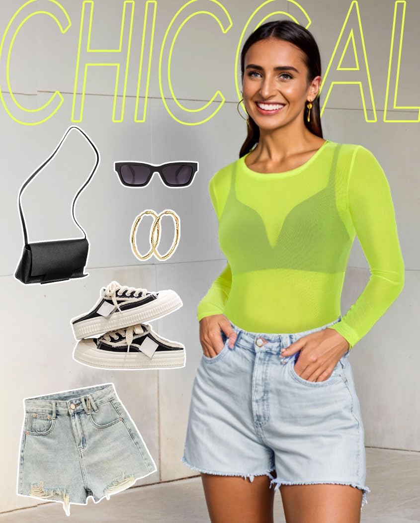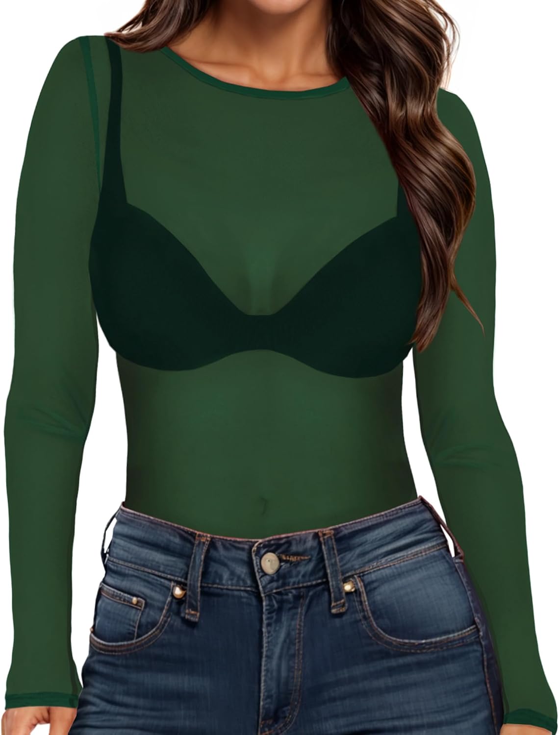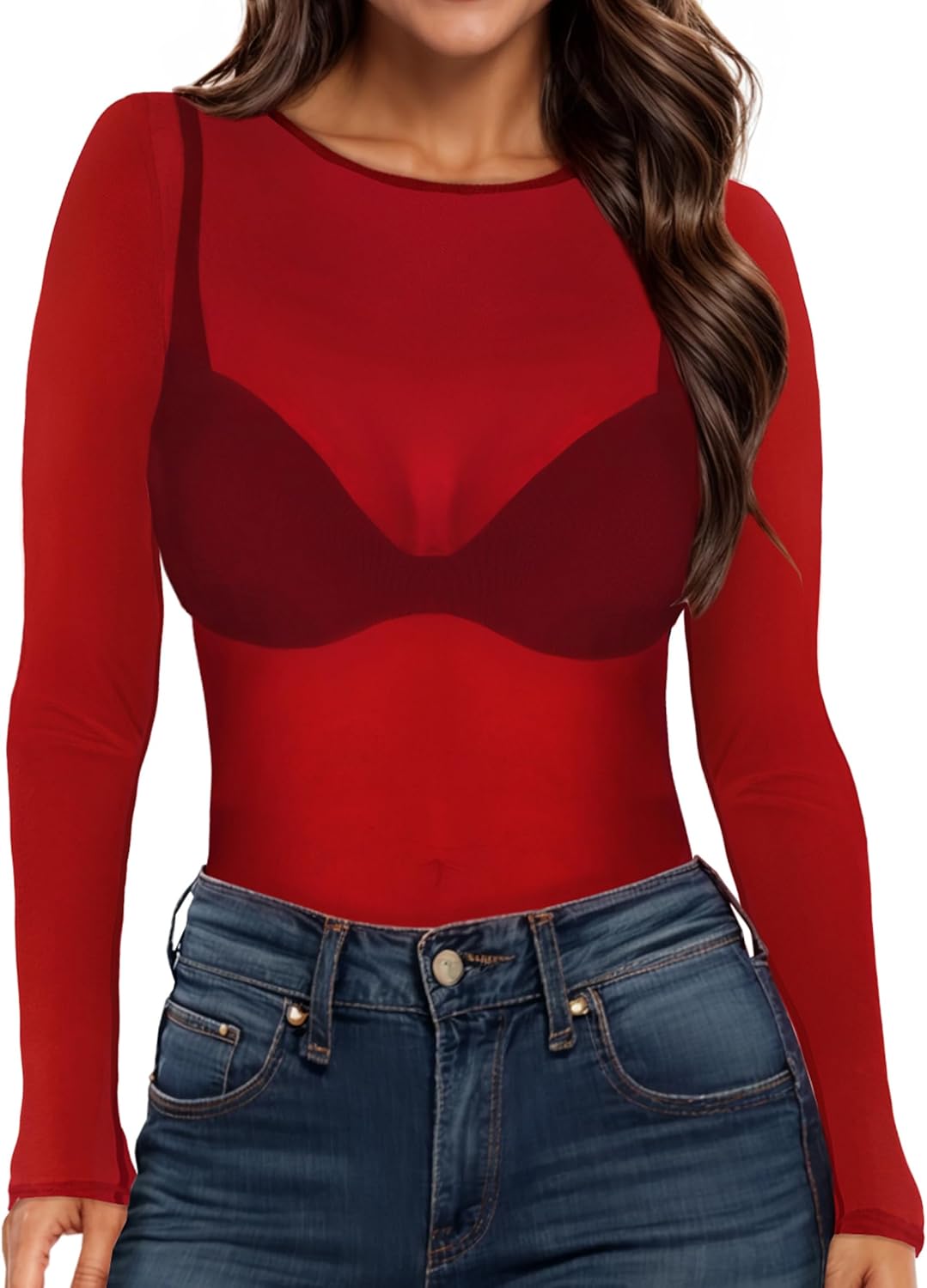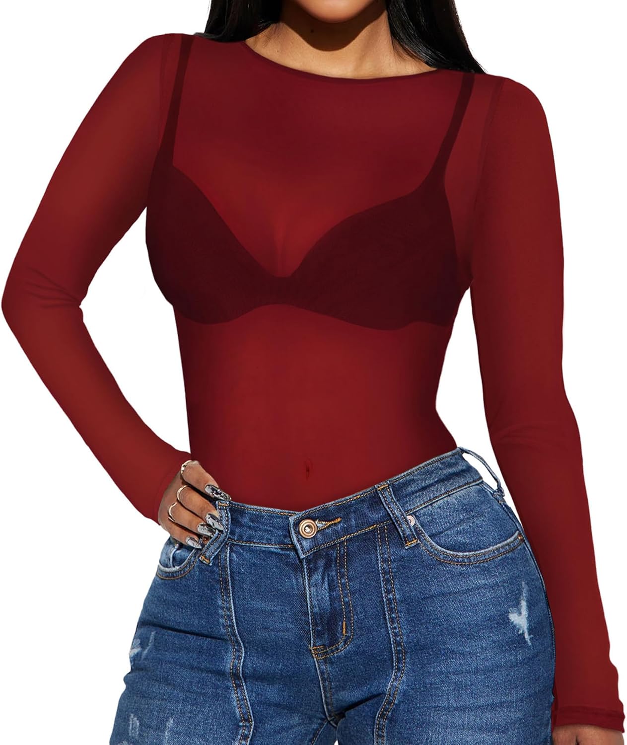 Women’s Mesh Tops Sheer Long Sleeve Tee Shirts Bodycon See Through Blouse Clubwear