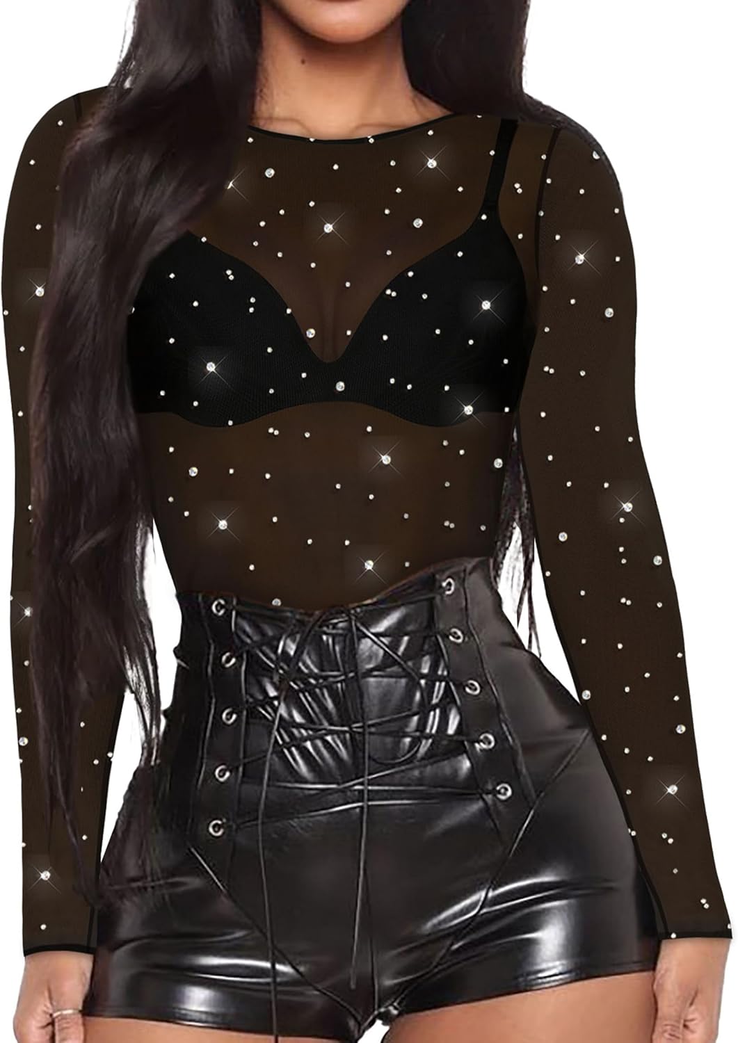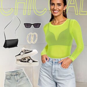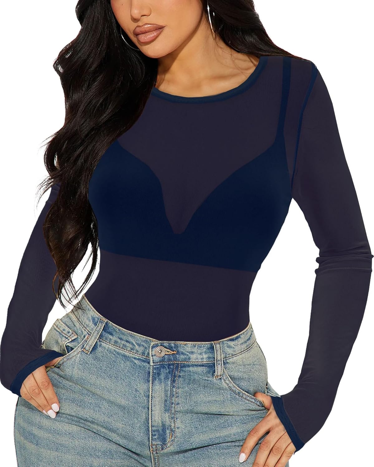 Women's Mesh Tops Sheer Long Sleeve Tee Shirts Bodycon See Through Blouse Clubwear quantity