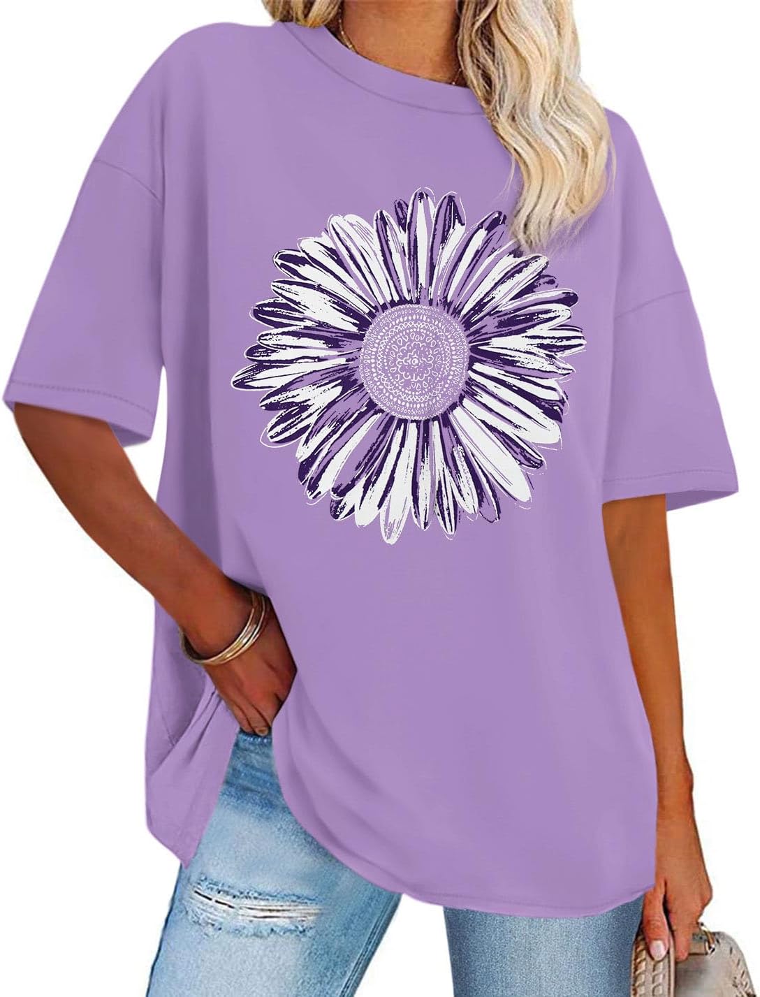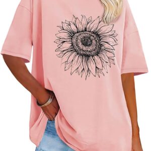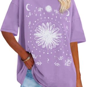 Womens Oversized Tshirt Graphic Tees Crew Neck Summer Short Sleeve Loose Fit Tops