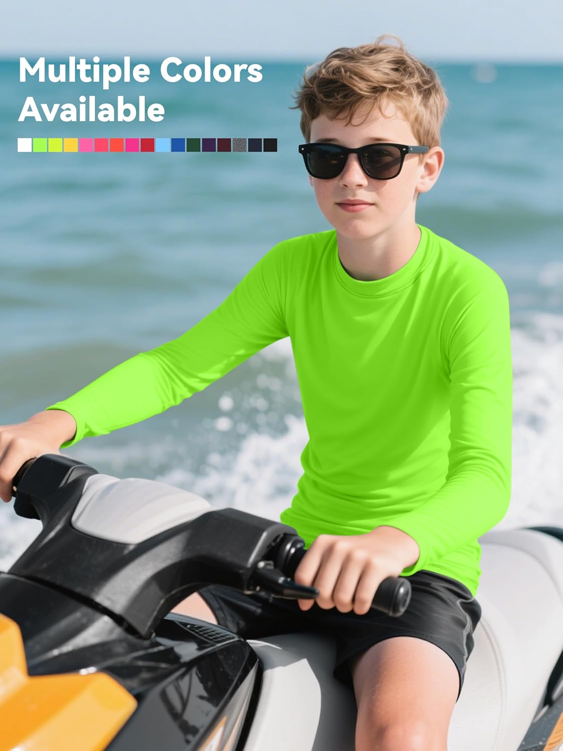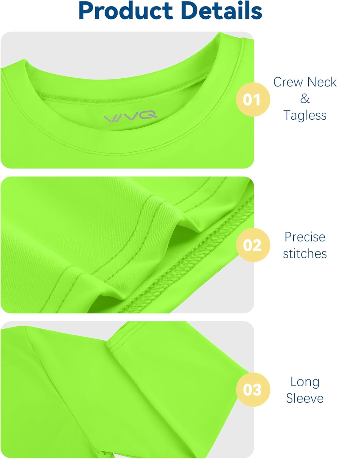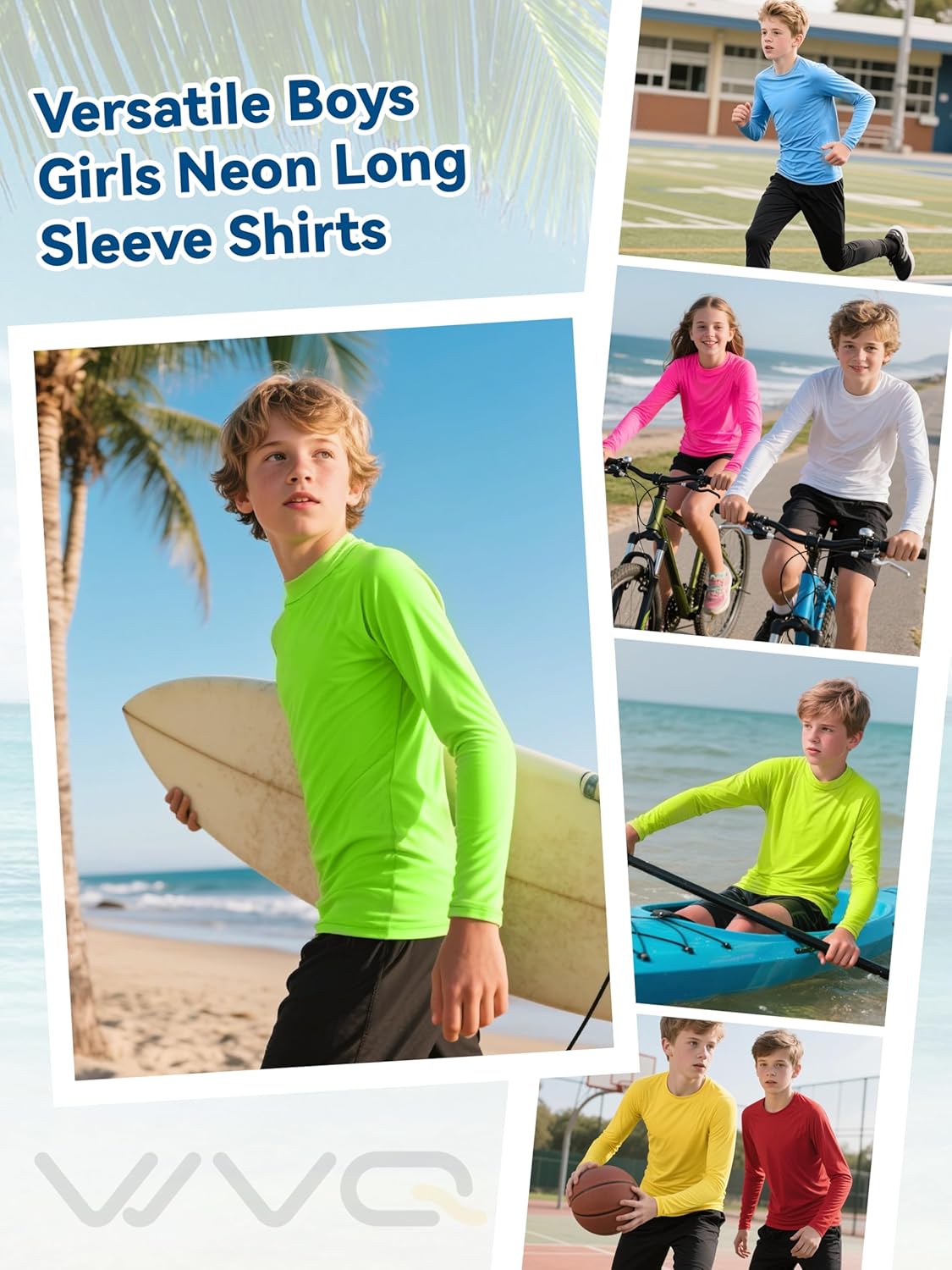 WVQ Youth Neon Shirts Dry Fit Long Sleeve Athletic T-Shirts Boys Girls UPF 50+ Quick Dry Neon Shirt for Kids 2T to Youth