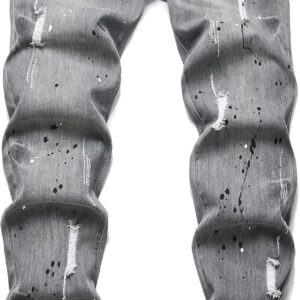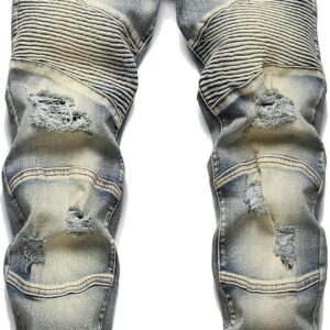 XIMXIMMTIAN Mens Slim Fit Jeans Stretch Ripped Biker Jeans for Men Fashion Straight Comfort Flex Waist Casual Denim Pants