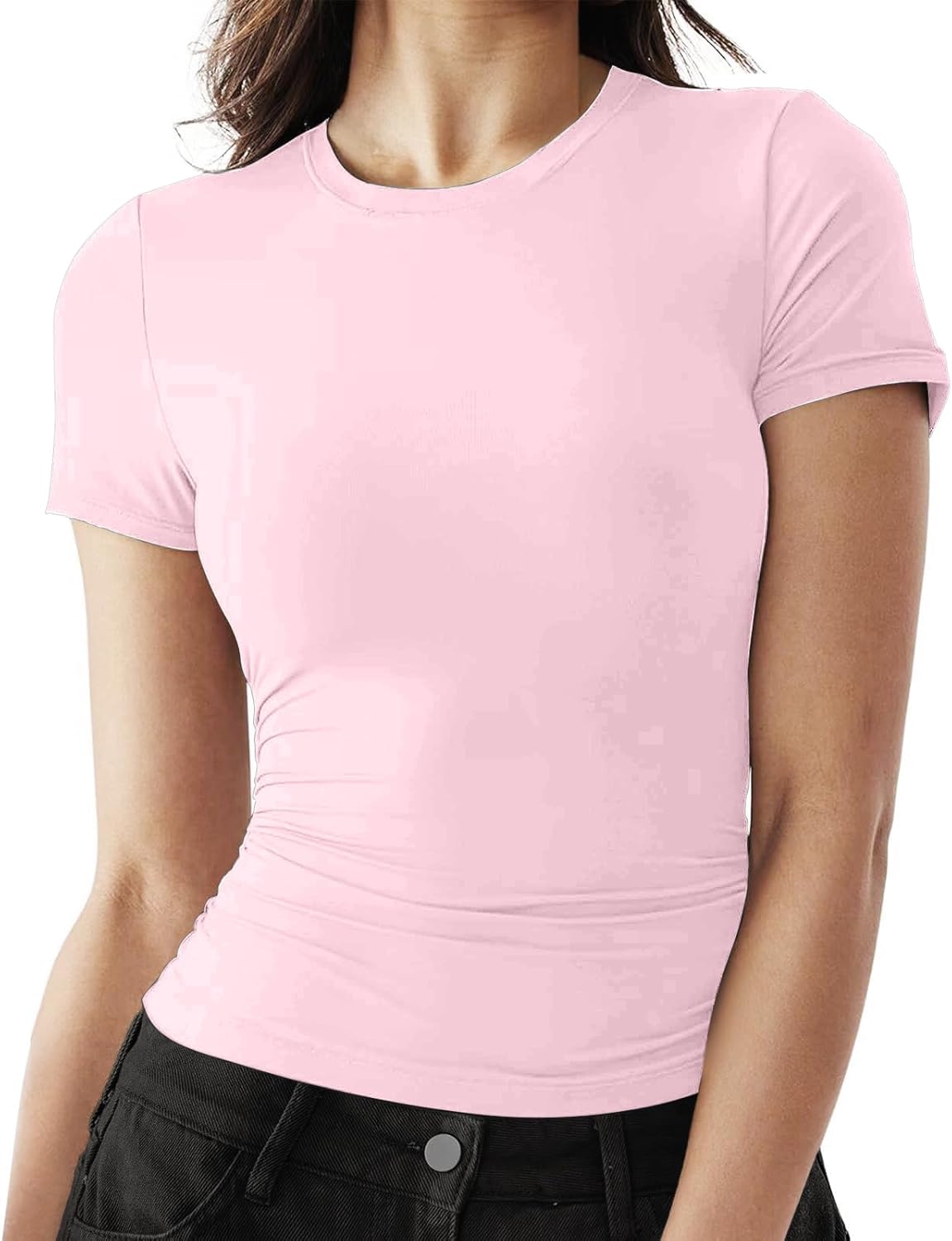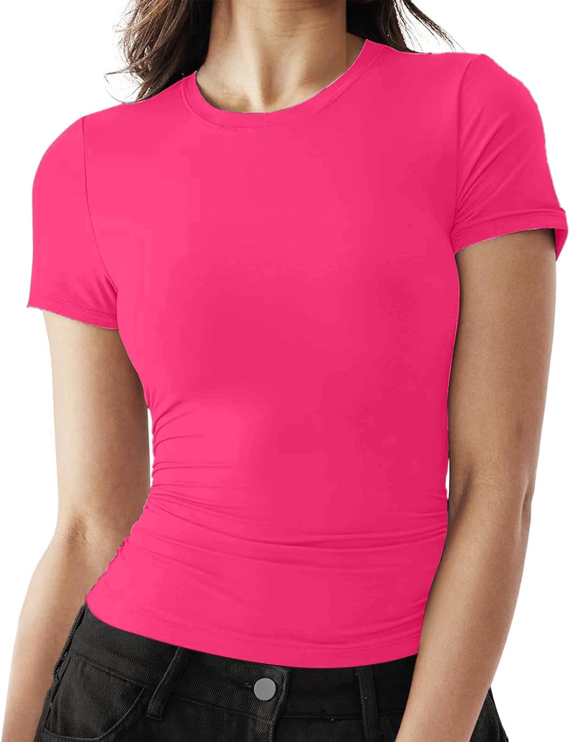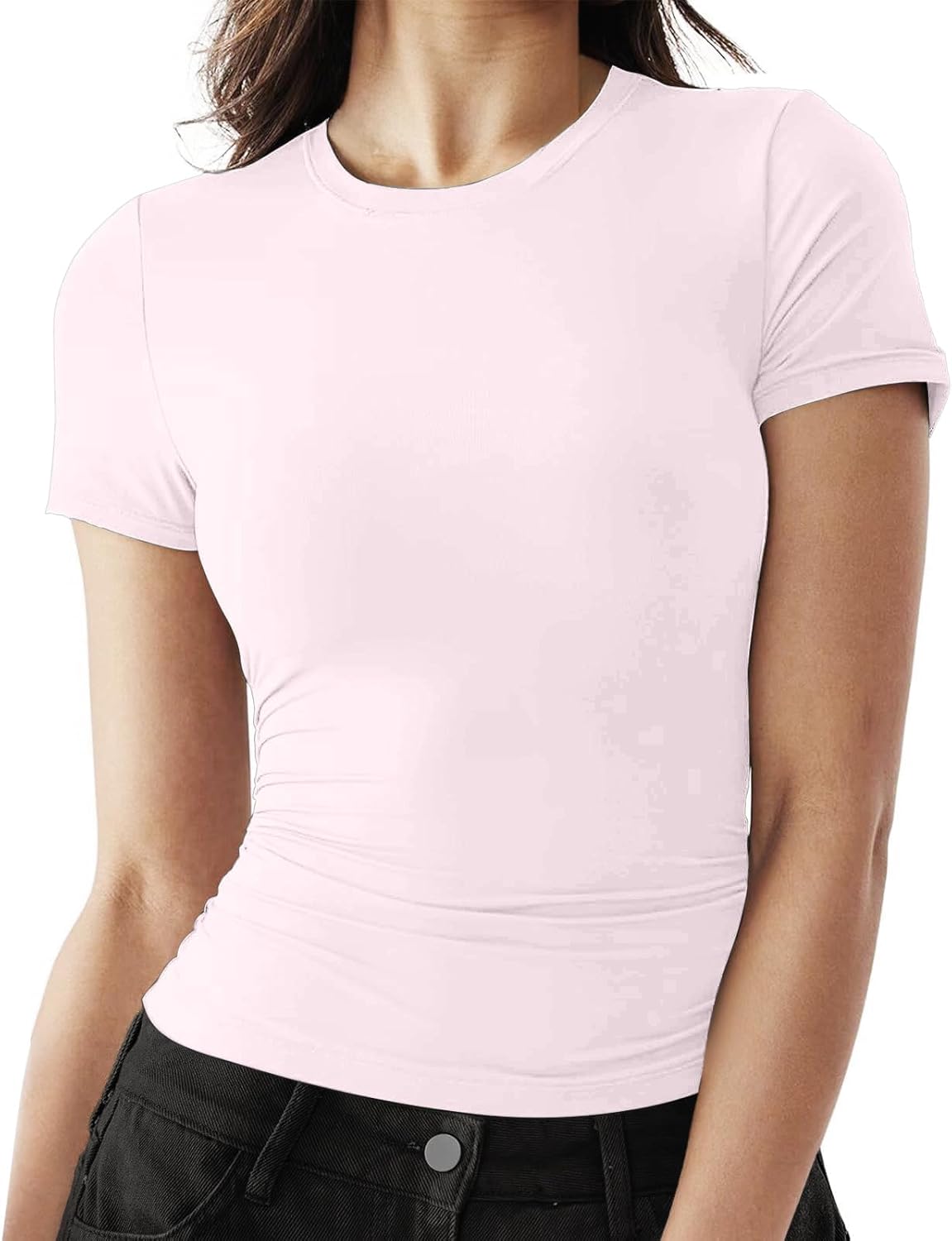 XPIZH Womens Short Sleeve Crop Tops Trendy Scoop Neck Tight T-Shirts Slim Fit Tees Female Casual Summer Y2k Clothing