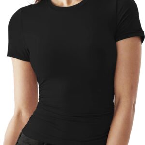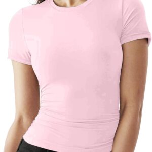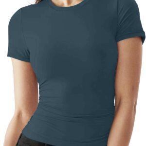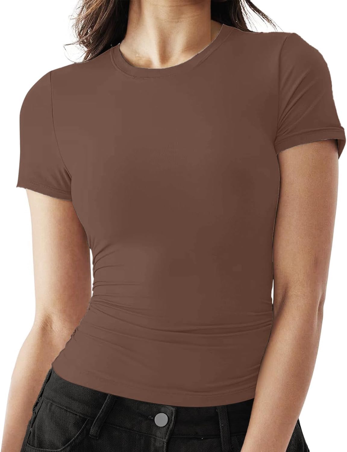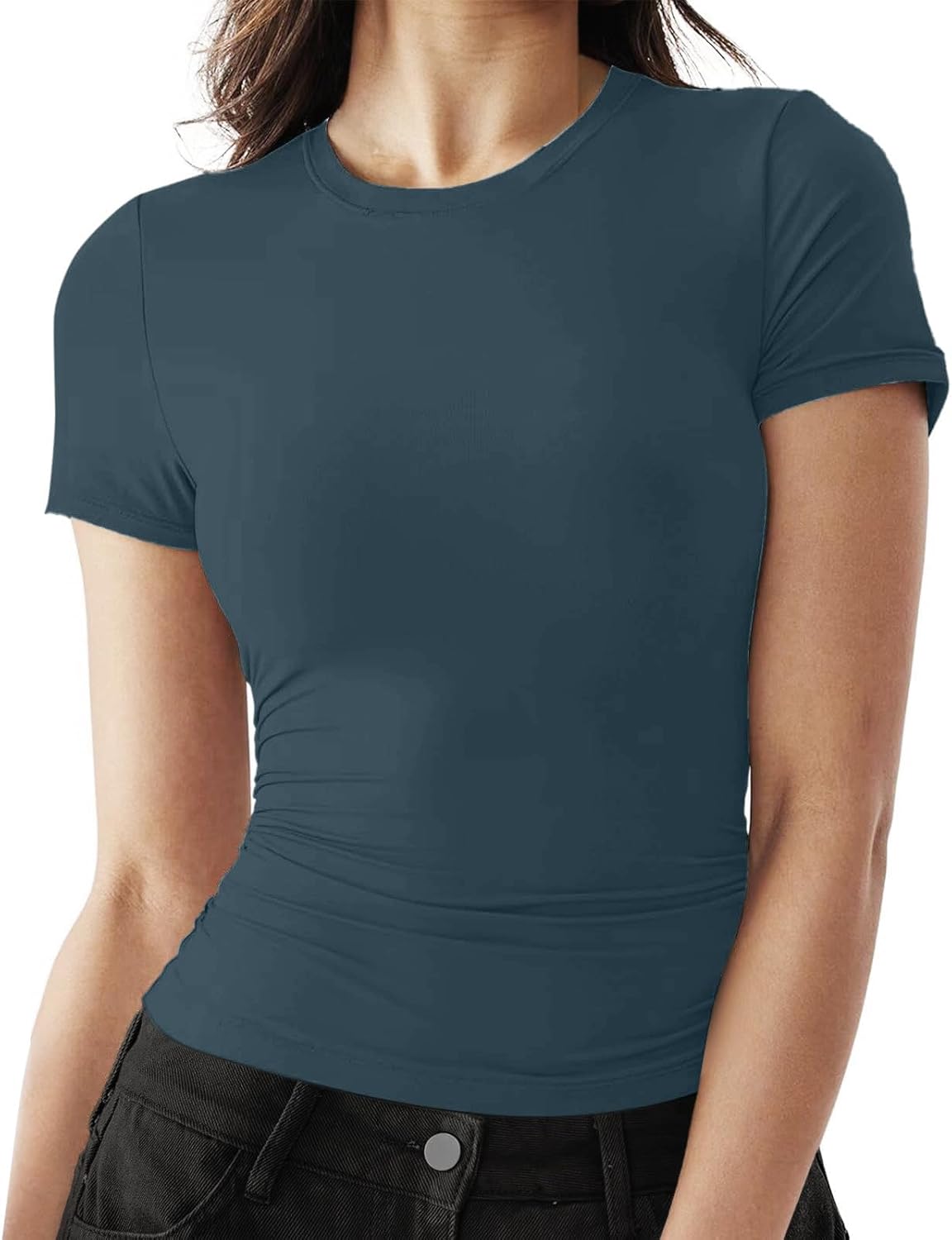 XPIZH Womens Short Sleeve Crop Tops Trendy Scoop Neck Tight T-Shirts Slim Fit Tees Female Casual Summer Y2k Clothing