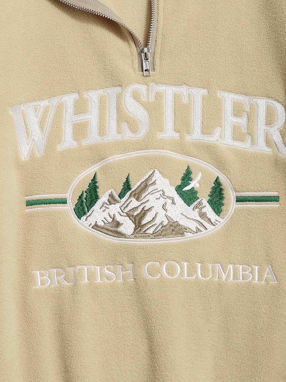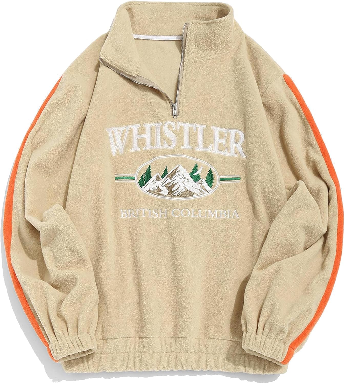 ZAFUL Men’s Letter Mountain Vintage Pullover Embroidery Polar Fleece Quarter Zip Sweatshirt (WHISTLER-Light Coffee, M)
