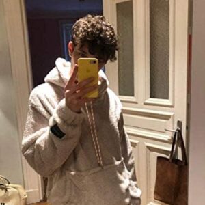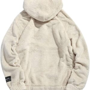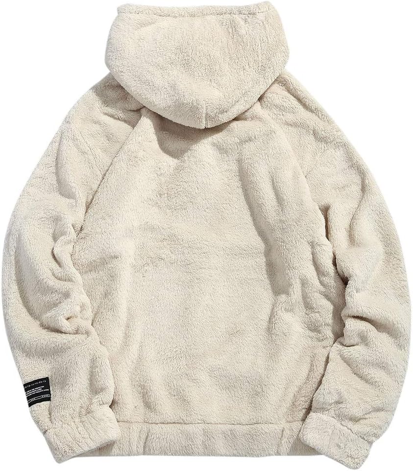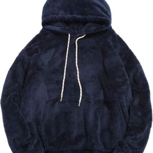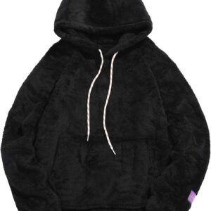 ZEZCLO Men’s Solid Fluffy Sherpa Hoodie Oversized Hooded Pullover Winter Fuzzy Sweatshirt Outwear with Kangaroo Pocket