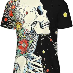 Zhhoya Watercolor Indian Headdress Skull Paint T-Shirts for Men Boys Crew Neck 3D Printed Graphic Short Sleeve Tees Shirt quantity